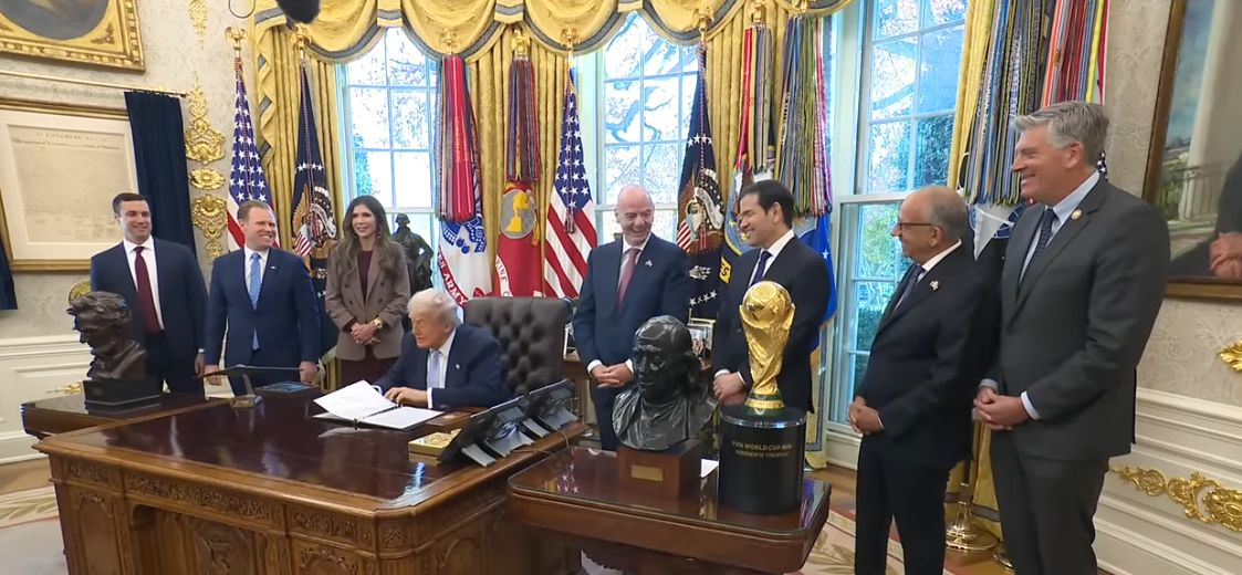 Nick Luna (Trumps assistent): «Mr. President, uten ditt lederskap ville ikke dette skjedd. På ti måneder har vi fått et system som skal ønske verden velkommen. Den største verten i verdenshistorien skal være vert for verden også her. Dette systemet lar folk med FIFA-billett kjøpt gjennom FIFA gå gjennom FIFA-portalen, som så får prioritet hos Utenriksdepartementet, slik at de får avtaler før eksisterende avtaler, slik at folk som kjøper billetter, kan være trygge på at de får komme til kampene, bruke penger, reise rundt i landet og nyte arrangementet. Det er en utrolig visjon presidenten har gjennomført på ti måneder. Vi startet med nesten ingenting, og hele dette teamet, med presidentens veiledning, har gjort dette mulig. Det blir de største lekene i verdenshistorien.»
